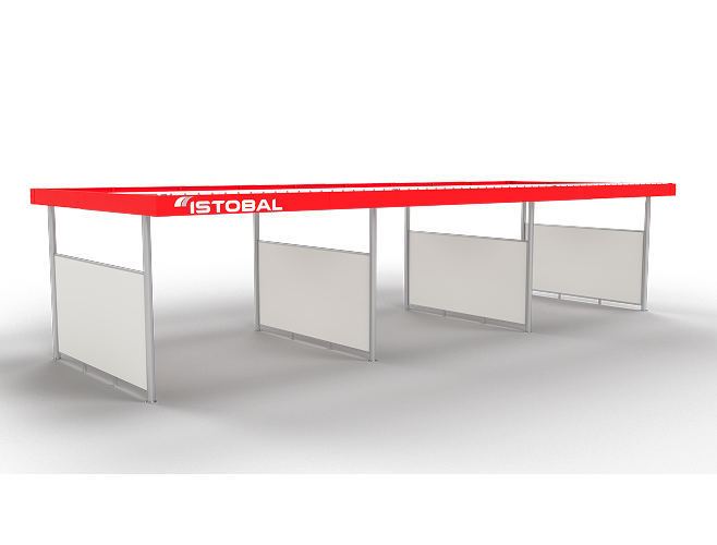 Gebruikt om de zijkanten af te sluiten of om wasplaatsen van elkaar te scheiden. De wanden zijn bevestigd met een frame van roestvrij staal en panelen met sandwichconstructie.